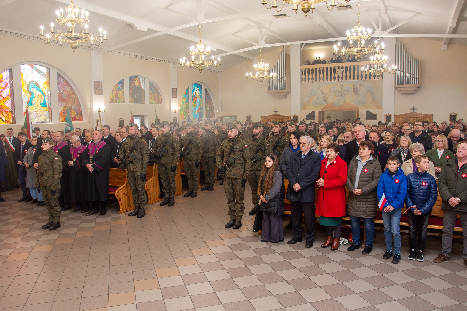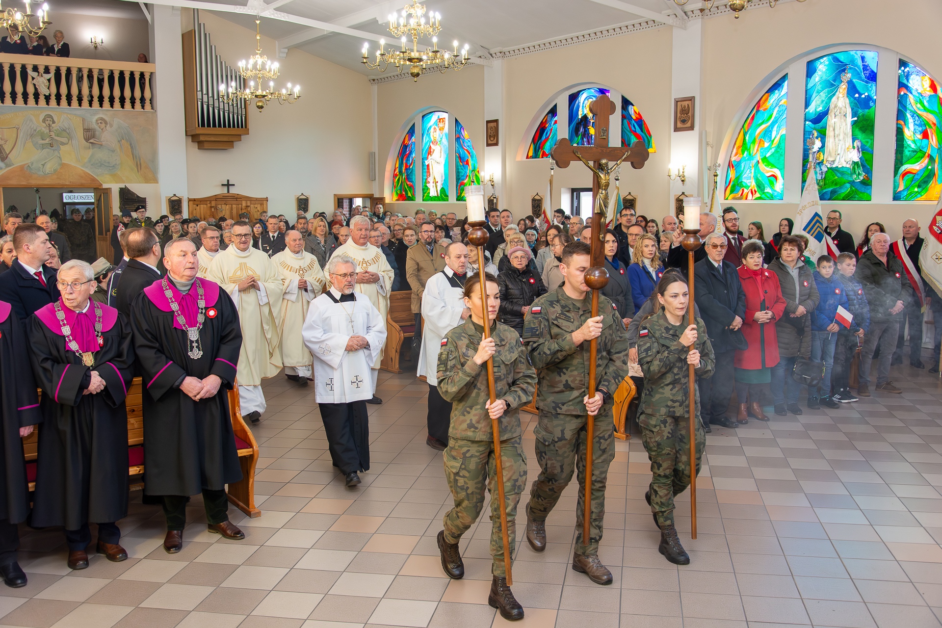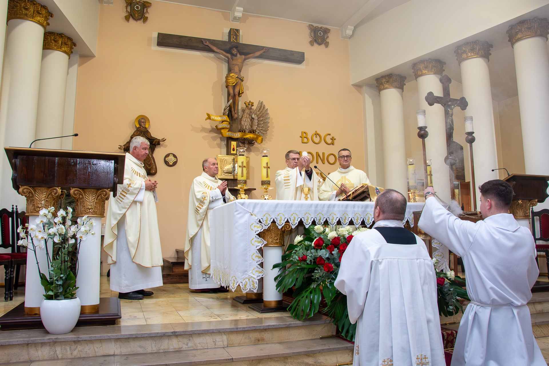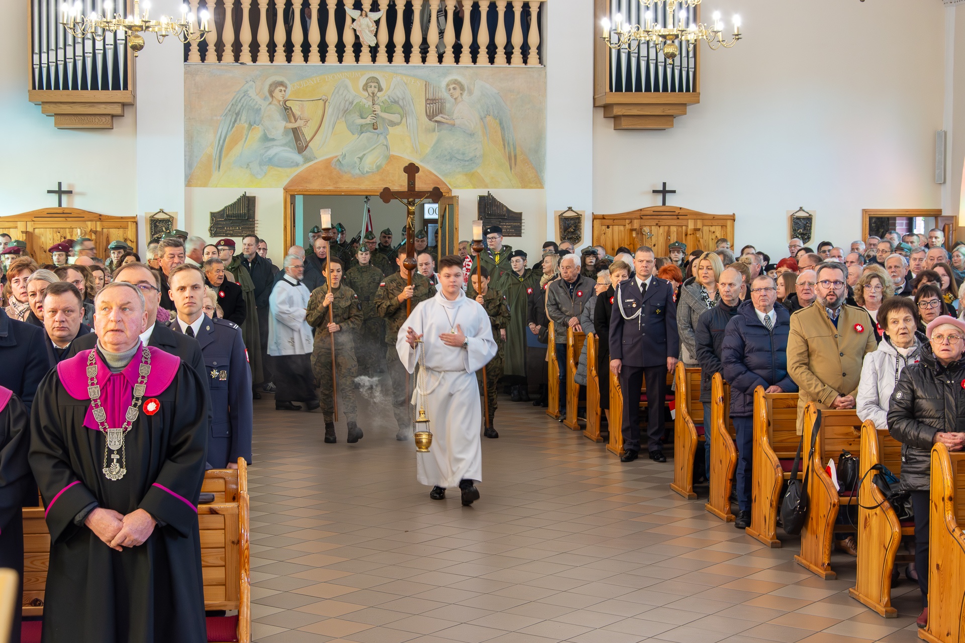 Po powitaniu w kościele Matki Bożej przez księdza proboszcza, pod przewodnictwem Ekscelencji zastała odprawiona uroczysta Msza św. z udziałem wojskowej asysty liturgicznej. Ksiądz Biskup w wygłoszonym słowie zwrócił uwagę na potrzebę przemiany ducha, aby w sercach wiernych rozwijała się miłość, jaka rodzi pomiędzy matką oraz jej dzieckiem.